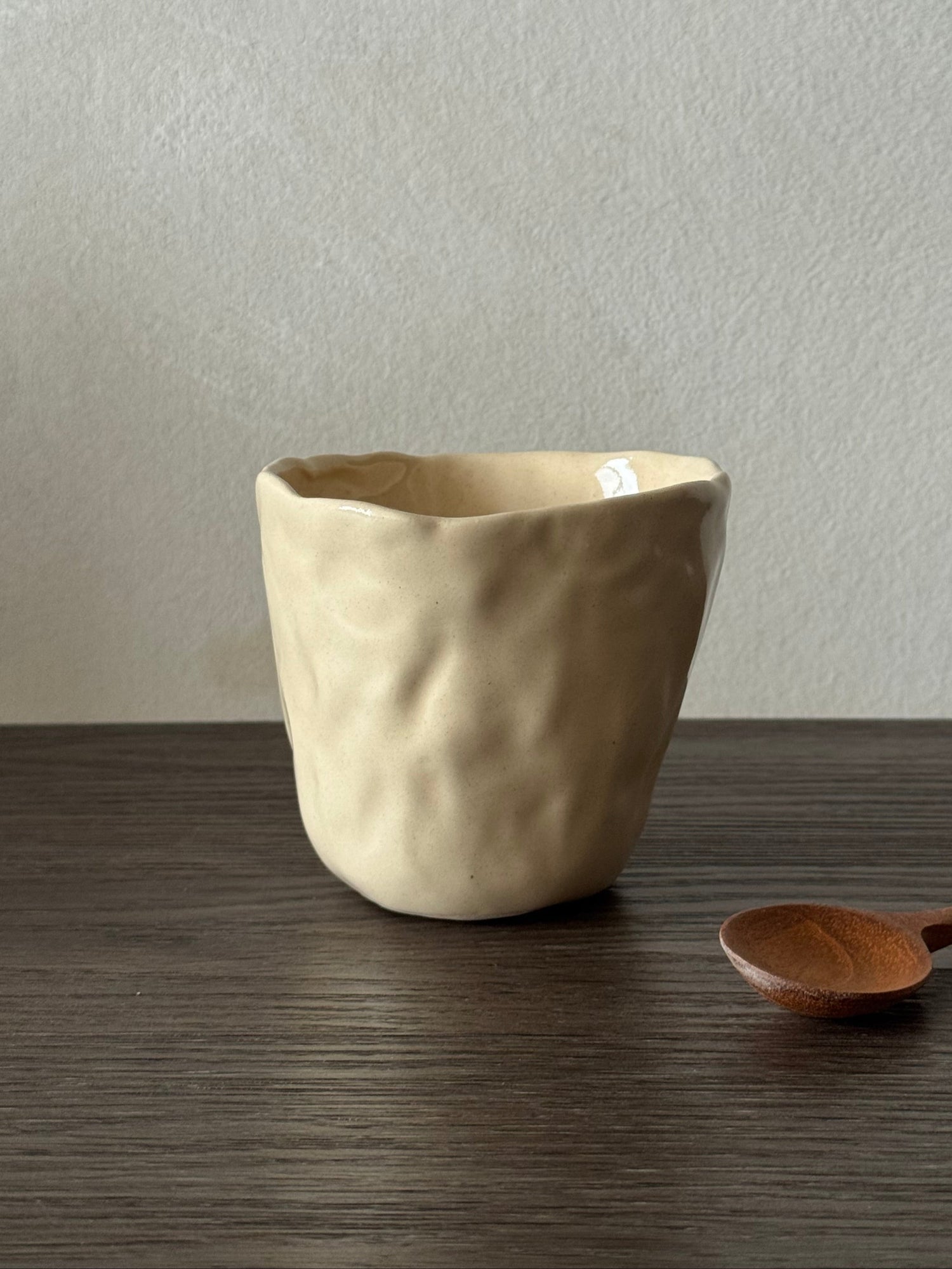 Een favoriet voor echte koffieliefhebbers: onze beige organisch gevormde mokken gemaakt van hoogwaardig keramiek.